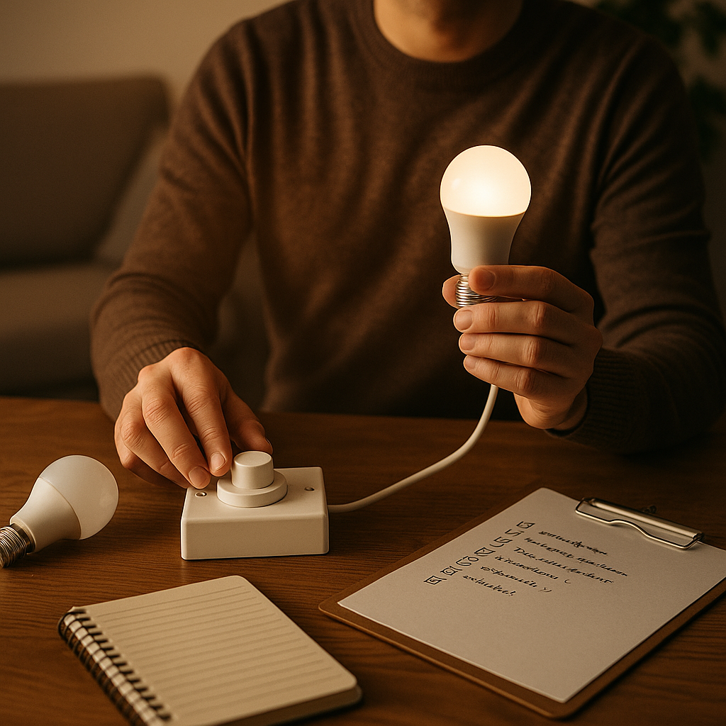 Hvis du har mange lyskilder, kan strategien “skift dimmeren først, test én pære” ofte give det bedste forhold mellem pris og sikkerhed for et stabilt resultat.